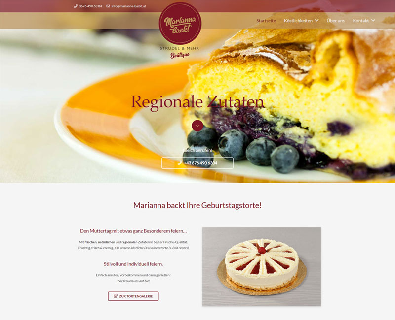Die Patisserie ‘Marianna backt’, gelegen mitten in Fürstenfeld, benötigte für ihre köstlichen Produkte einen kompletten Relaunch der Website und ist nun unter www.marianna-backt.at zu erreichen.
